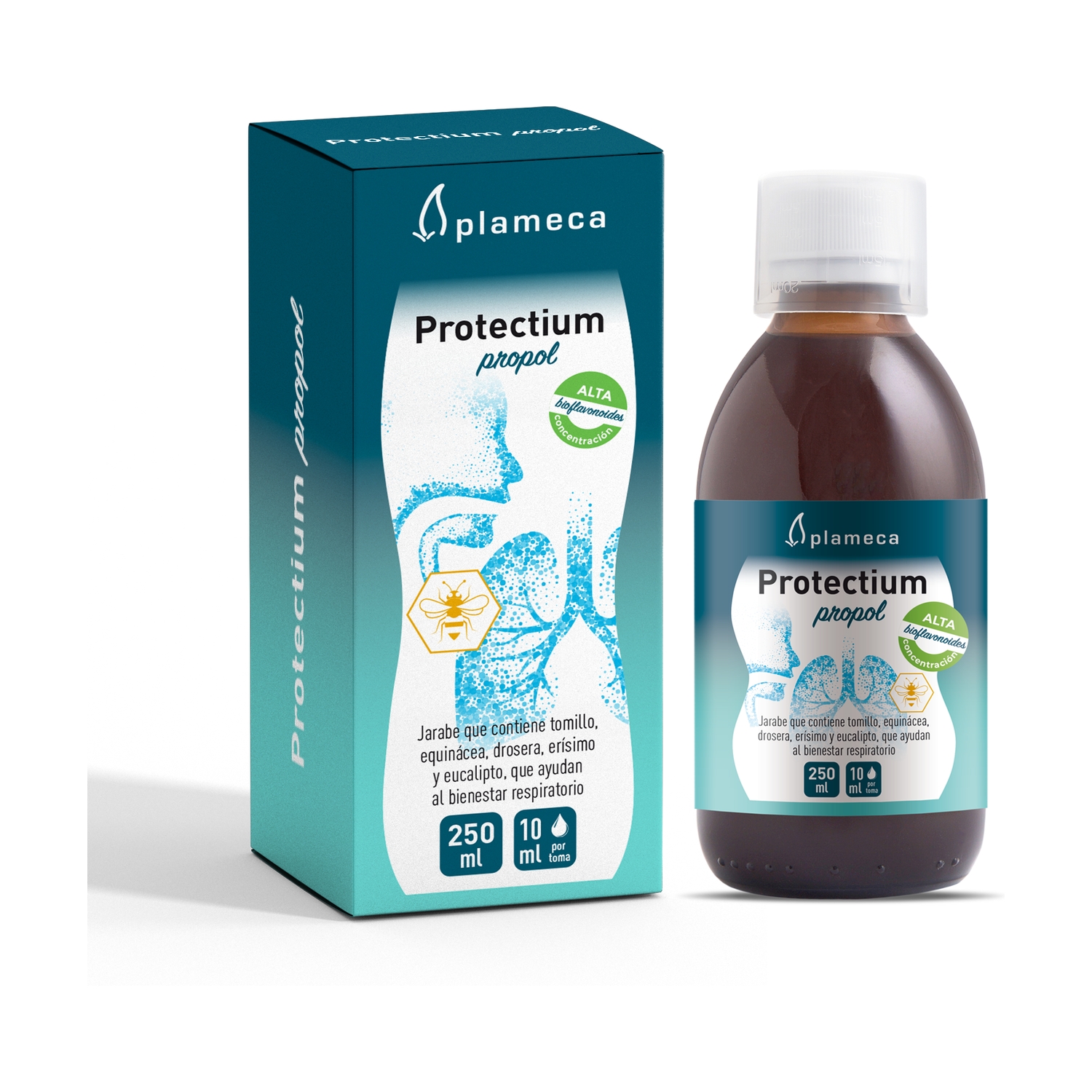 Protectium Propol de Plameca es un jarabe formulado con una potente combinación de ingredientes naturales: própolis, miel de eucalipto, y extractos de plantas como el tomillo, equinácea, drosera, erísimo y eucalipto.