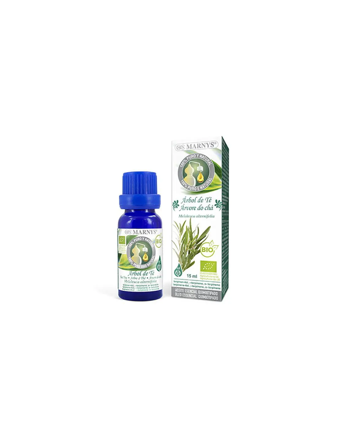 El Aceite esencial Árbol de Té de Marnys se obtiene mediante destilación por arrastre de vapor de las hojas y ramas del arbusto australiano Melaleuca alternifolia. Este proceso conserva sus propiedades y garantiza un aceite esencial quimiotipado, lo que significa que su composición bioquímica está definida y es constante, asegurando su calidad y eficacia. Posee un aroma fuerte, fresco y penetrante.
