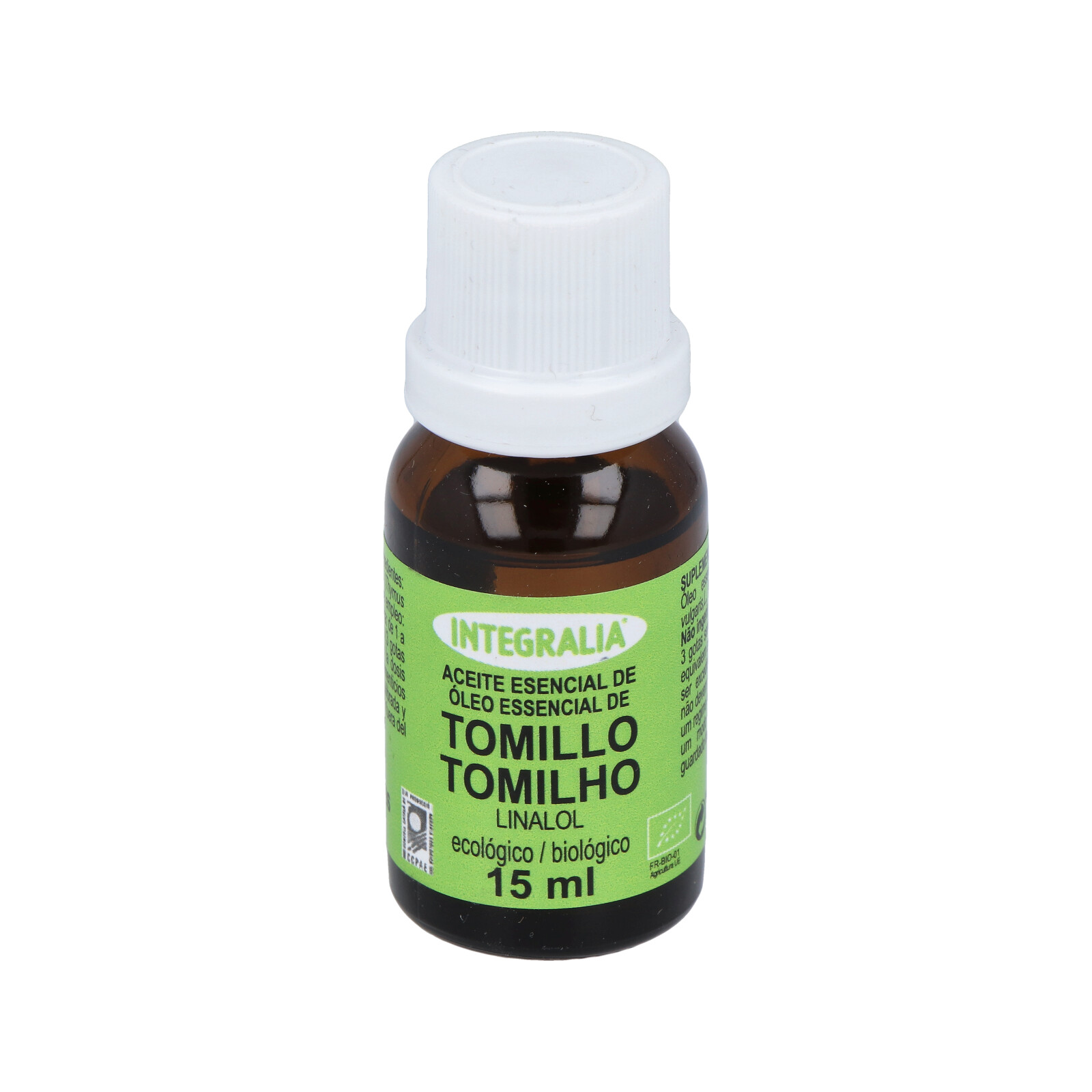 El Aceite Esencial de Tomillo Bio de Integralia es un producto 100% puro y natural, proveniente de agricultura ecológica y certificado por Ecocert. Se obtiene por destilación por arrastre de vapor de las partes aéreas de la planta Thymus vulgaris. Integralia ofrece una esencia de tomillo de alta calidad, con un sabor y aroma intensos, cálidos y herbáceos, ideal tanto para uso alimentario como para aplicaciones en cosmética y aromaterapia.